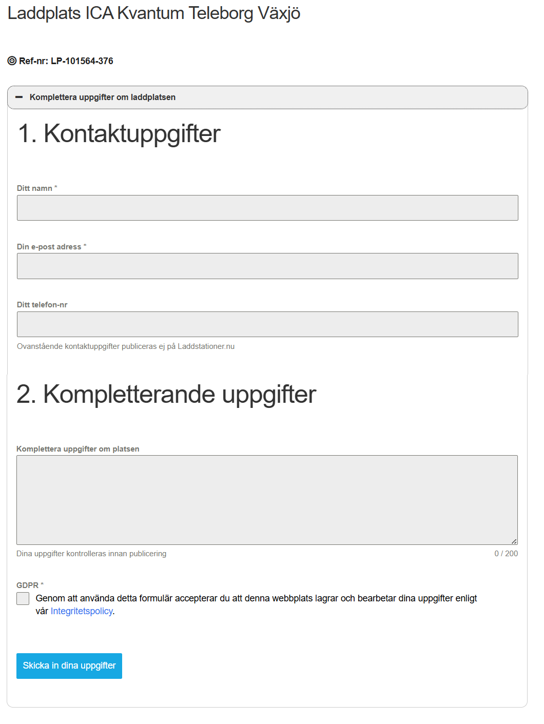 Du kan komplettera uppgifter om laddplats ”on the go”.